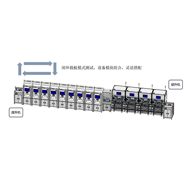 本款產(chǎn)品,適用于現(xiàn)有生產(chǎn)線是倍速鏈載板模式,需要筆記本電腦自動(dòng)化測(cè)試設(shè)備完成所有項(xiàng)目的自動(dòng)化無人測(cè)試,通用機(jī)型,零時(shí)差換型